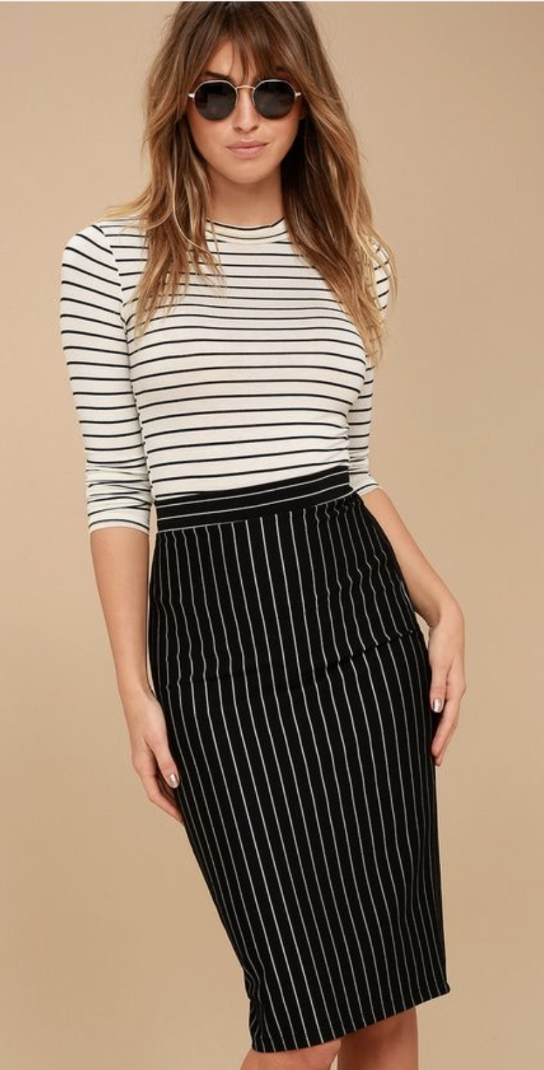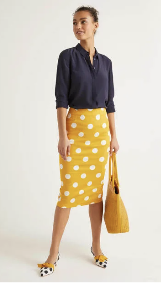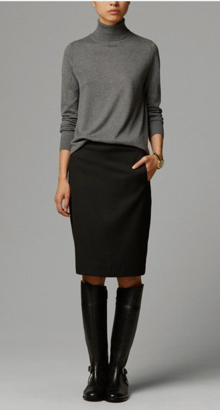 - Skirts should be straight and narrow, with perhaps a few crisp gathers to accommodate your hips. Skirts must lie flat from the hip through the upper thigh area (stitch down pleats at the top, so as not to upset this vertical line). Hemlines start one inch below the knee to top of the calf for day. Longer, gently-flaring hemlines work well.