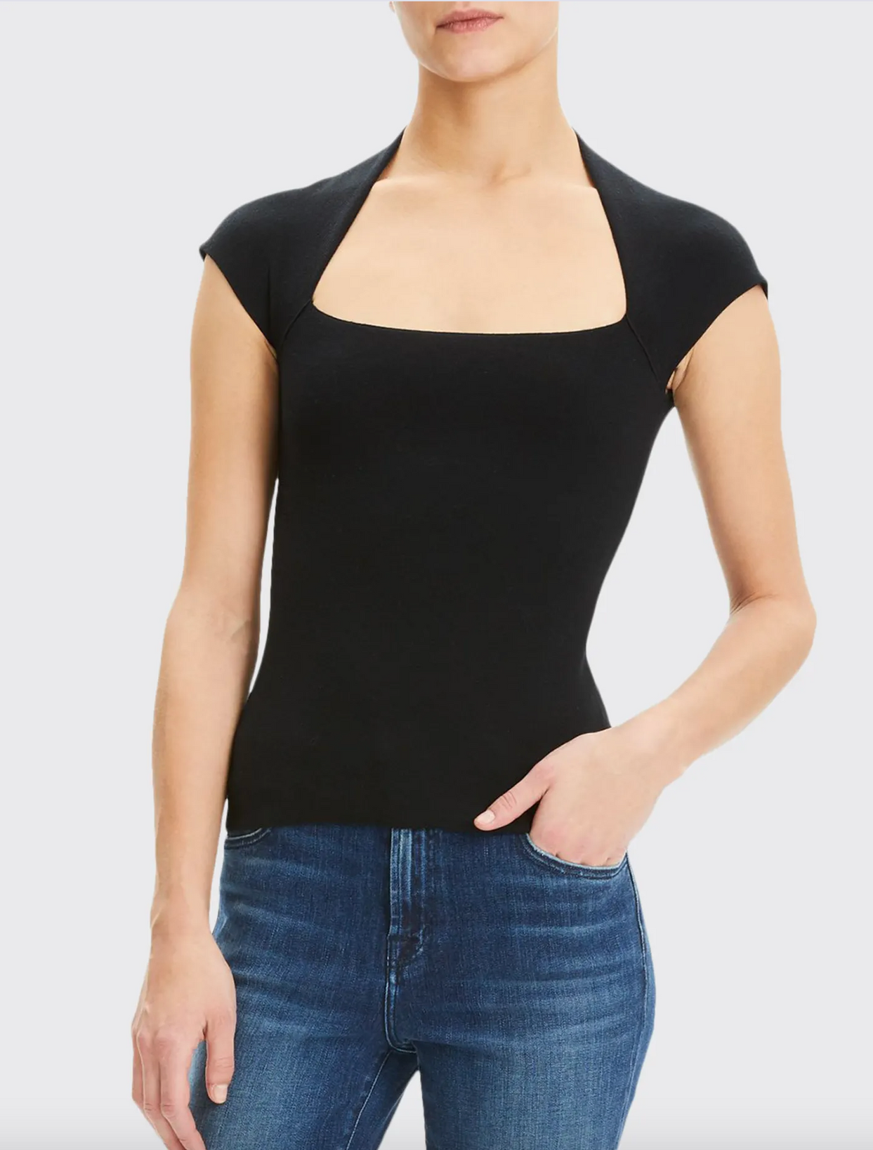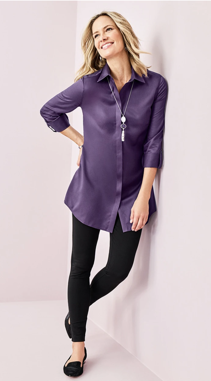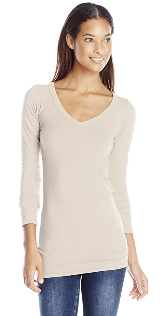 A longer tee in a deep v-neck is an easy choice, and these dramatic necklines are stunning on Dramatic Classics.