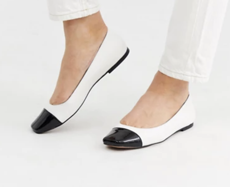 Look for tailored, narrow pumps or flats. Kibbe specifically recommends two-tone “spectator” styles like the ones shown above for Dramatic Classics.